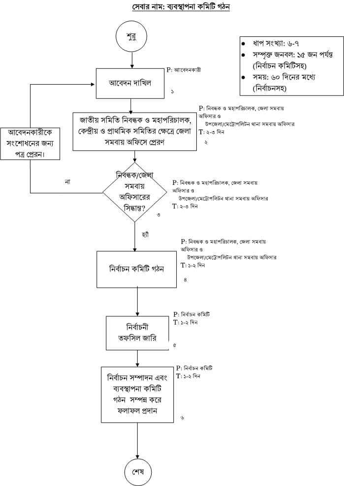 প্রাপ্তবয়স্ক কমপক্ষে ২০ জন সাধারণ জনগণের আবেদন এবং সমবায় সমিতি নিবন্ধন নীতিমালা,২০১৩ অনুযায়ী সংশ্লিষ্ট কাগজপত্র উপজেল. প্রাপ্তবয়স্ক কমপক্ষে ২০ জন সাধারণ জনগণের আবেদন এবং সমবায় সমিতি নিবন্ধন নীতিমালা,২০১৩ অনুযায়ী সংশ্লিষ্ট কাগজপত্র উপজেলা/মেট্রোপলিটন থানা সমবায় অফিসে দাখিল করতে হয়। উপজেলা সমবায় অফিসার দাখিলকৃত রেকর্ডপত্র নিজে অথবা সহকারী পরিদর্শক সরজমিনে যাচাই করেন। যাচাই শেষে উপজেলা/মেট্রোপলিটন থানা সমবায় অফিসার যাচাই প্রতিবেদন এবং আবেদনকারী কর্তৃক দাখিলকৃত রেকর্ডপত্র জেলা সমবায় অফিসার বরাবরে প্রেরণ করেন।